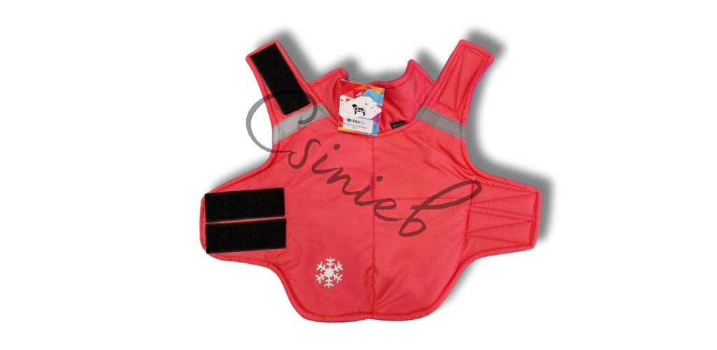 Vízlepergető külső anyag, meleg polár bélés, tépőzáras rögzítés a nyaknál és a has alatt, így egyszerűen és gyorsan feladható, még akkor is, ha a kutya nem szereti az öltöztetést.