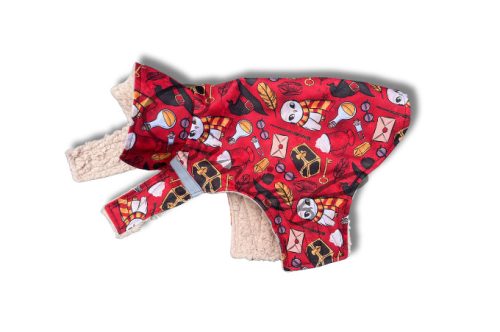 Vízlepergető külső anyag, meleg polár bélés, tépőzáras rögzítés a nyaknál és a has alatt, így egyszerűen és gyorsan feladható, még akkor is, ha a kutya nem szereti az öltöztetést.