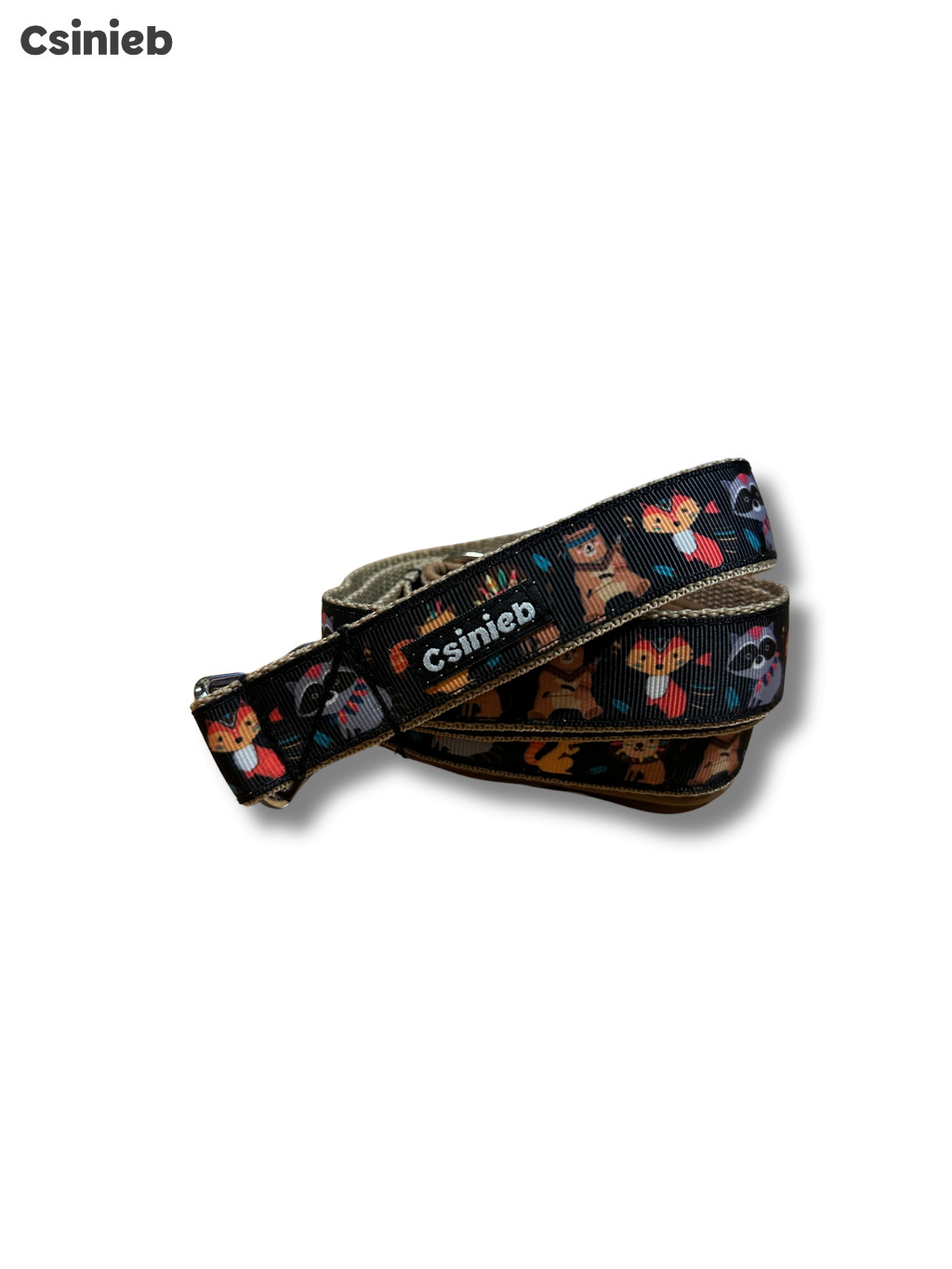 Fix bélelt póráz - INDIÁN ÁLLATOK MINTÁS - FEKETE