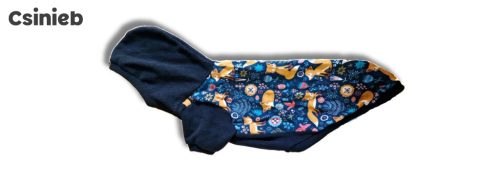 Ez a vagány pulóver rövid mellső ujjas fazonban készül, ami szabad mozgást biztosít, ugyanakkor kellően melegíti a váll- és mellkastájat. A kapucni különlegessége, hogy nem lóg a kutya fejére, hanem egy kis garbó szerű nyakmegoldással van kialakítva. Ez nemcsak jól néz ki, hanem extra komfortot is biztosít, hiszen nem zavarja a kutyát séta közben. Viszont... ha mégis úgy dönt a kutyusod, hogy felveszi a kapucnit, akkor garantáltan elolvad mindenki körülötte – egyszerre lesz ijesztően menő és elviselhetetlenül cuki. Egyetlen nézéssel képes kicsalni a teljes havi jutifali adagot a legszigorúbb gazdiból is.