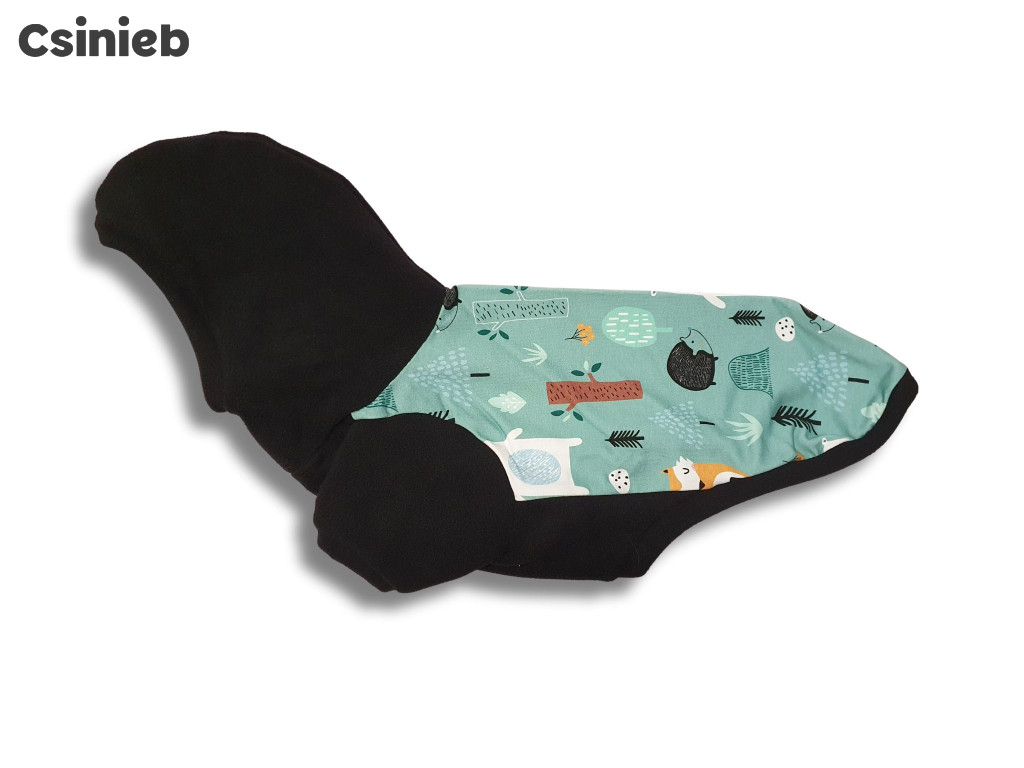 Ez a vagány pulóver rövid mellső ujjas fazonban készül, ami szabad mozgást biztosít, ugyanakkor kellően melegíti a váll- és mellkastájat. A kapucni különlegessége, hogy nem lóg a kutya fejére, hanem egy kis garbó szerű nyakmegoldással van kialakítva. Ez nemcsak jól néz ki, hanem extra komfortot is biztosít, hiszen nem zavarja a kutyát séta közben. Viszont... ha mégis úgy dönt a kutyusod, hogy felveszi a kapucnit, akkor garantáltan elolvad mindenki körülötte – egyszerre lesz ijesztően menő és elviselhetetlenül cuki. Egyetlen nézéssel képes kicsalni a teljes havi jutifali adagot a legszigorúbb gazdiból is.