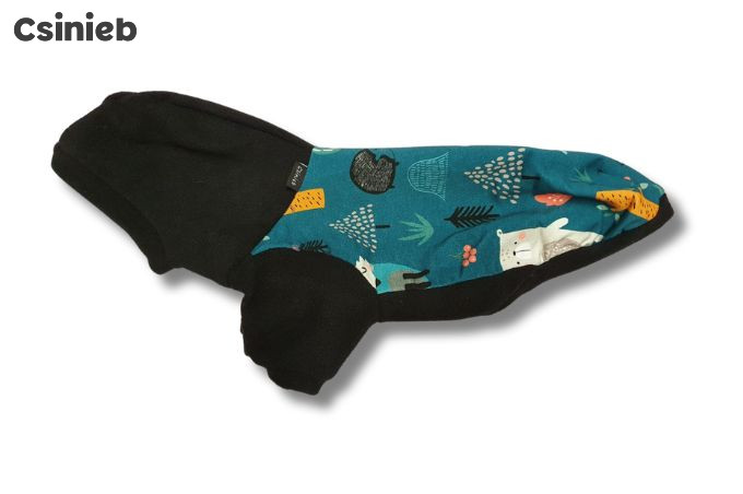 Ez a vagány pulóver rövid mellső ujjas fazonban készül, ami szabad mozgást biztosít, ugyanakkor kellően melegíti a váll- és mellkastájat. A kapucni különlegessége, hogy nem lóg a kutya fejére, hanem egy kis garbó szerű nyakmegoldással van kialakítva. Ez nemcsak jól néz ki, hanem extra komfortot is biztosít, hiszen nem zavarja a kutyát séta közben. Viszont... ha mégis úgy dönt a kutyusod, hogy felveszi a kapucnit, akkor garantáltan elolvad mindenki körülötte – egyszerre lesz ijesztően menő és elviselhetetlenül cuki. Egyetlen nézéssel képes kicsalni a teljes havi jutifali adagot a legszigorúbb gazdiból is.
