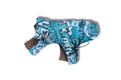 Vízlepergető külső anyag, meleg polár bélés, tépőzáras rögzítés a nyaknál és a has alatt, így egyszerűen és gyorsan feladható, még akkor is, ha a kutya nem szereti az öltöztetést.