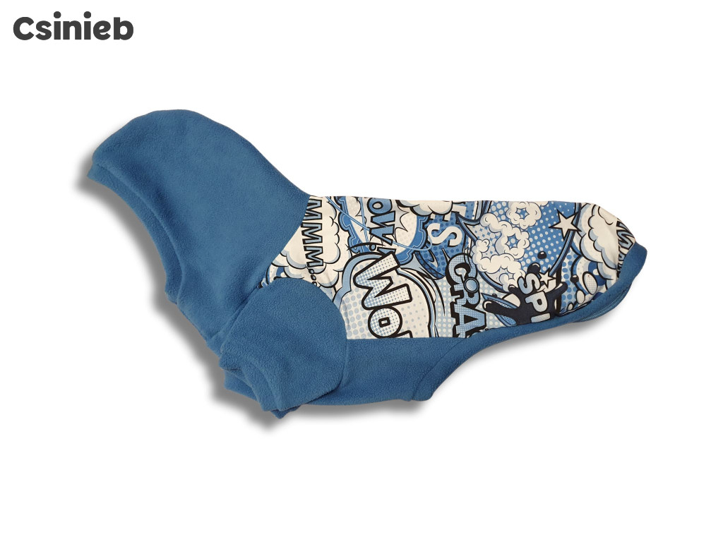 Ez a darab univerzális fazonban készül, így kan és szuka kutyusokra egyaránt jól illeszkedik. A háta és nyakrésze lehet mintás vagy egyszínű, mindig a legfrissebb, legtrendibb anyagokból készítve – így minden darab egy kicsit egyedi. A pulóver alsó része rugalmas, puha mikropolár, amely nemcsak meleg, de kellemes tapintású, légáteresztő és kényelmes viselet is.